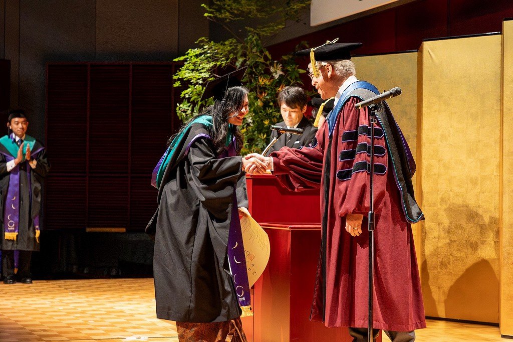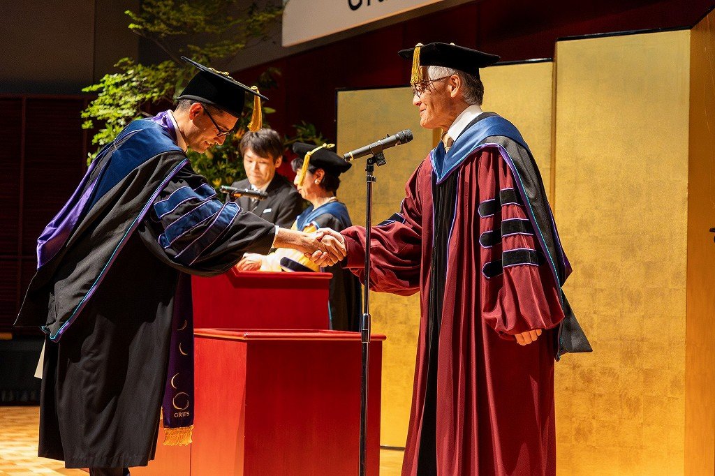 2025年9月12日(金)、政策研究大学院大学想海樓ホールにおいて2025年度秋季学位記授与式を挙行し、世界49か国から175名の修了生に学位記が授与されました。