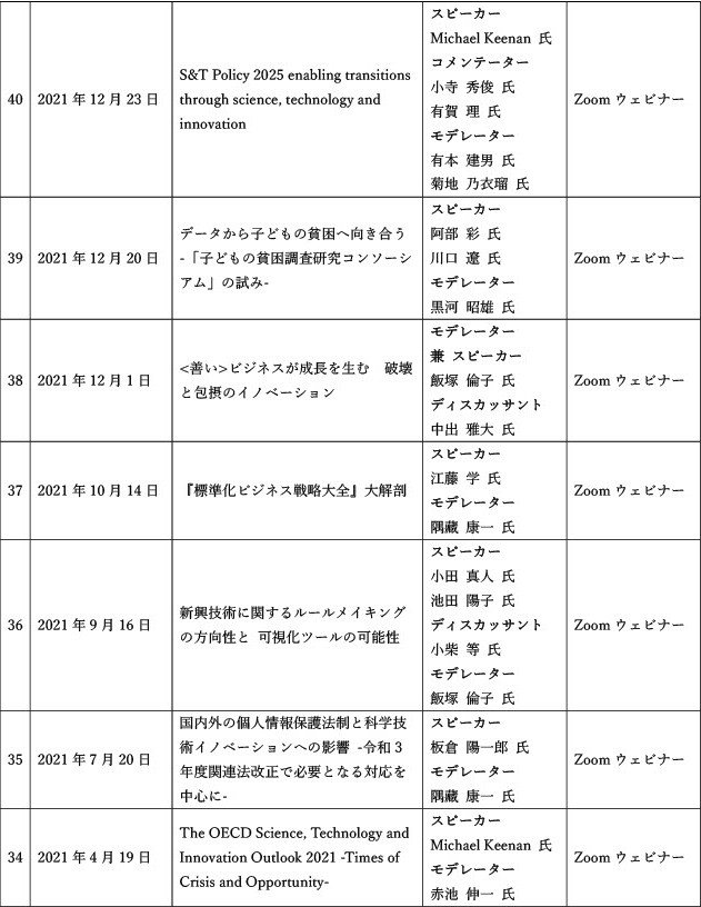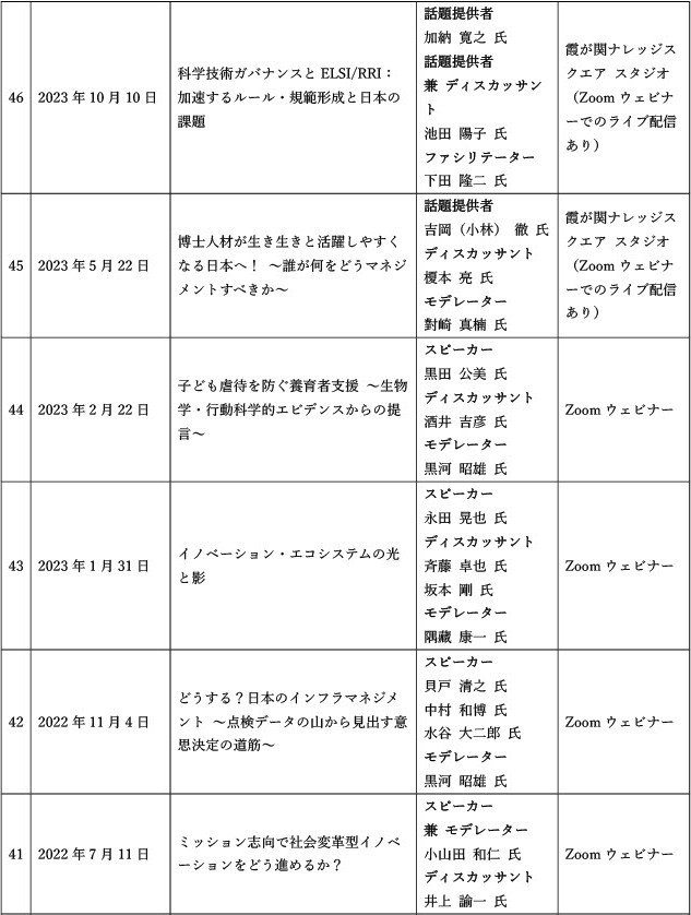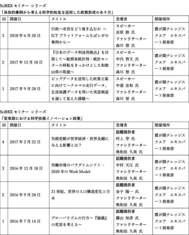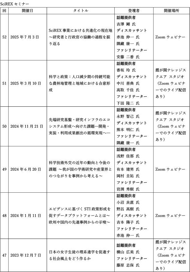 【参考】SciREXセミナーのこれまで、これから ~50回を超えた過去のテーマと登壇者、参加者を振り返る~(SciREX Quarterly vol.20)